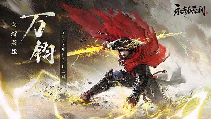 这一点很容易被忽视,但其实非常重要。《永劫无间》在四周年版本推出的新英雄万钧,就是一个很好的例子。他的角色核心定位是一个融合高机动位移、雷电连锁反应和爆发处决的敏捷型刺客,以“引雷处决”、“雷枪”、“高速位移”为核心,关键词是“雷霆镖客”、“雷霆万钧”。