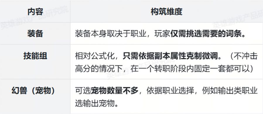 游戏中大部分构筑仅取决于玩家选择的职业,而职业装备与技能组搭配相对公式化,玩家最多依据属性克制更换部分技能即可,策略难度大幅降低。