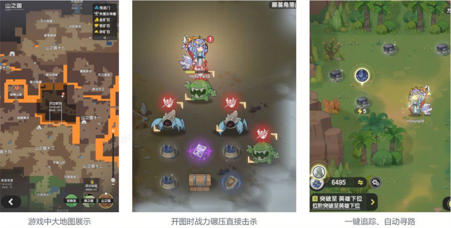 游戏中大地图承载了探索、剧情、收集等玩法,在一定程度上起到了丰富内容的作用。并且为减轻大部分玩家开图困难,游戏中还设置了一键追踪、战力碾压直接击杀、快捷解谜等便捷功能优化玩家体验。