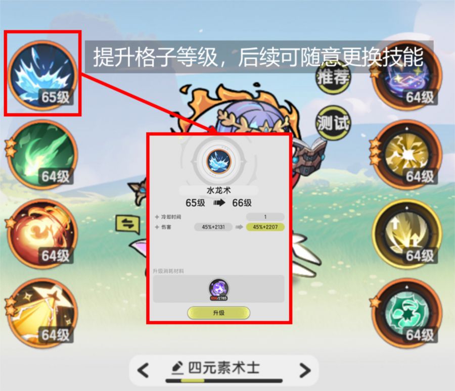 游戏中的核心养成项装备、技能、宠物等级等均采用“养格子”的提升方式,玩家只需要培养相对栏位的等级,在装备(技能)更替时可以无成本的更换。