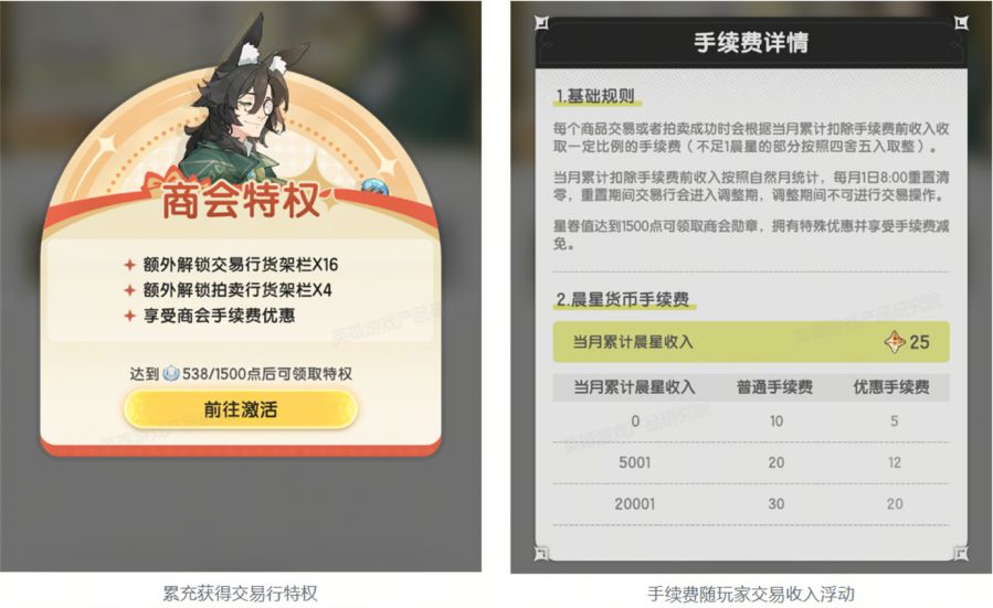 玩家参与交易行的交易会被官方收取手续费。通过累充奖励可以享受手续费优惠。当玩家当月通过拍卖行获得收入到达一定数额后,手续费会上调。
